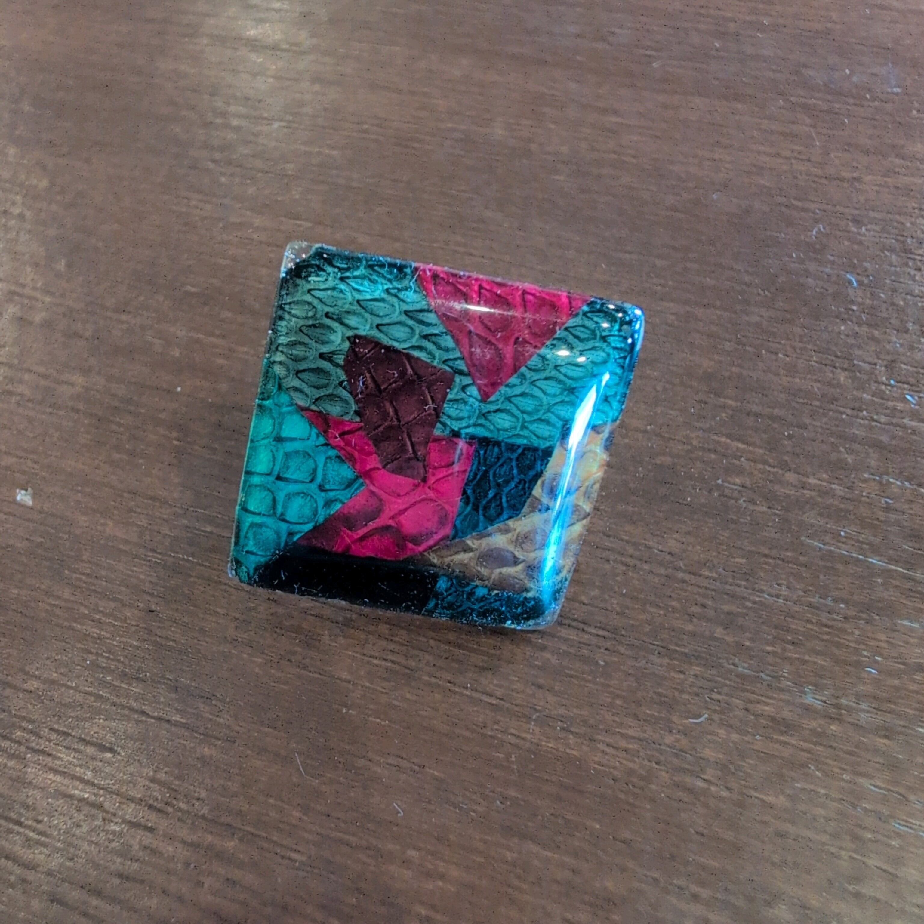 鮮やかなカラーを組み合わせたパッチワーク風のデザインが、コーディネートの主役になってくれそうな1つです