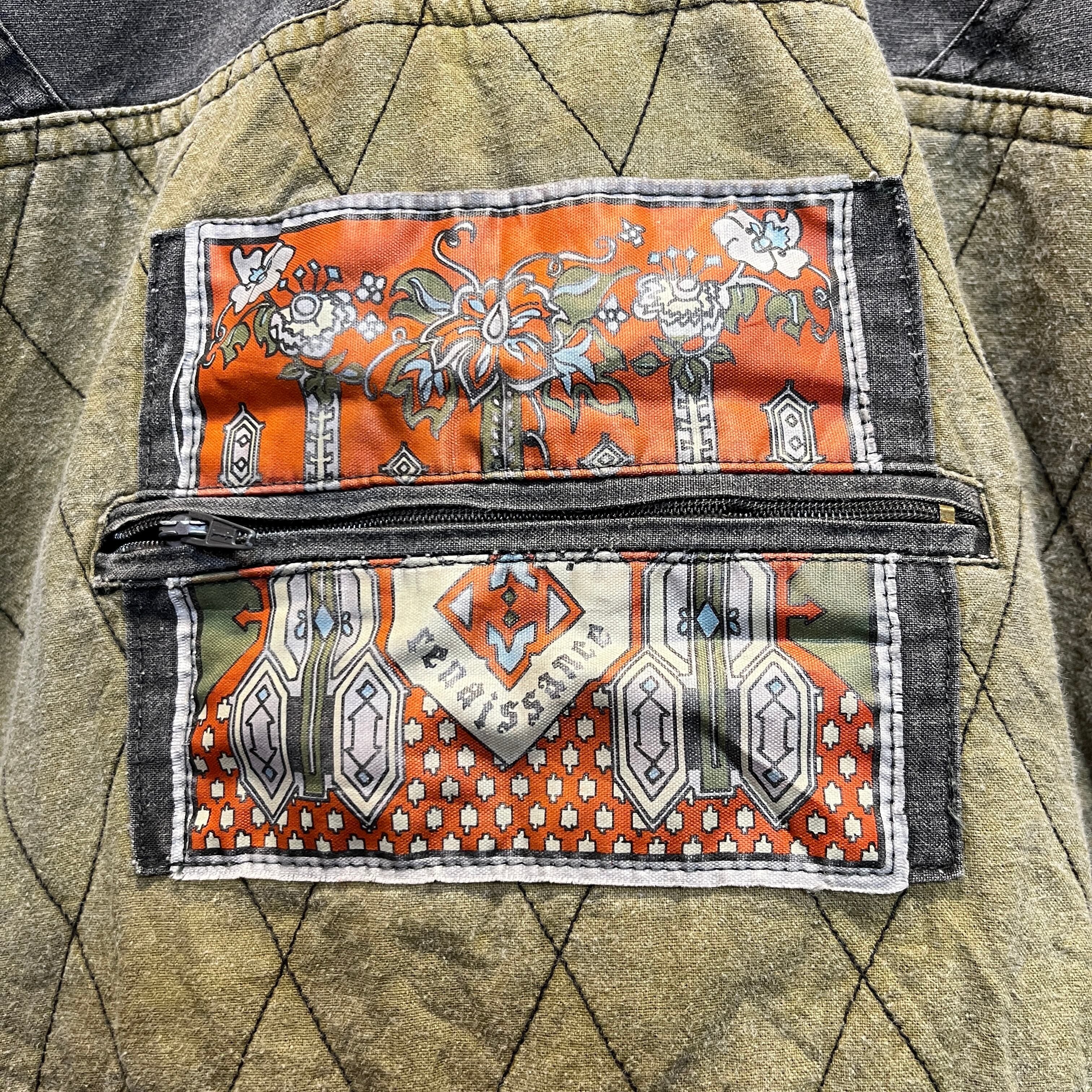 ハーフジップでお腹にポケットと民族調の柄が入っています