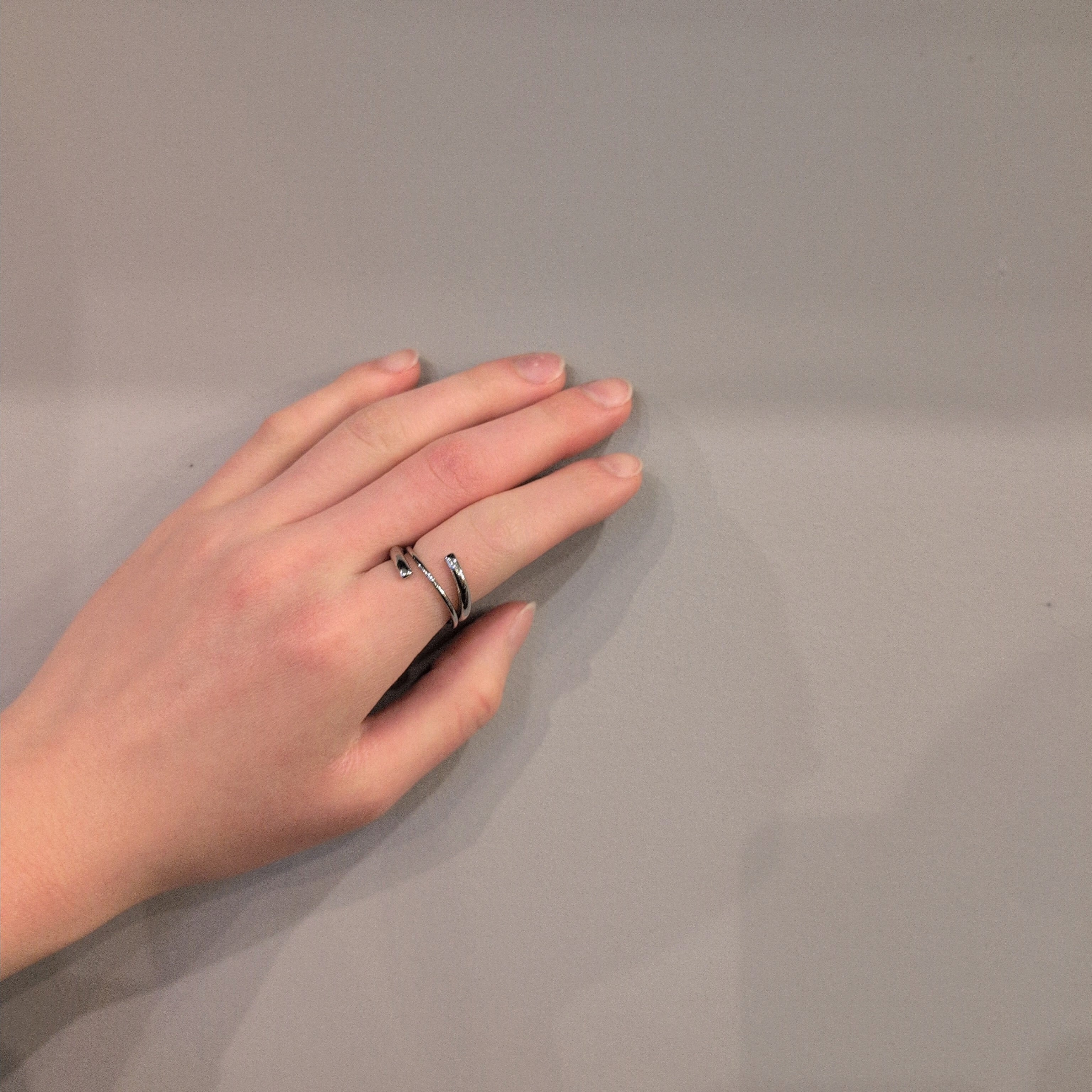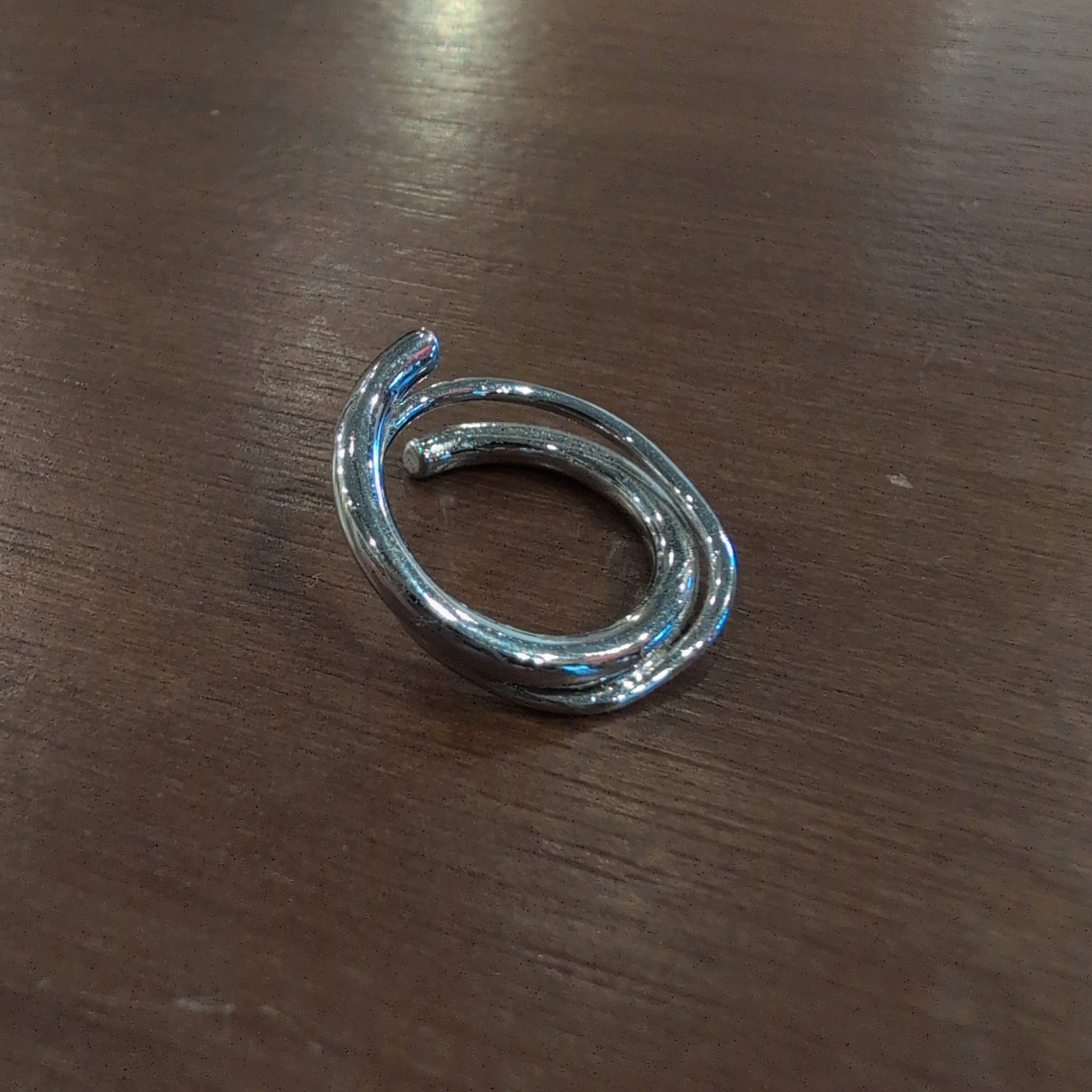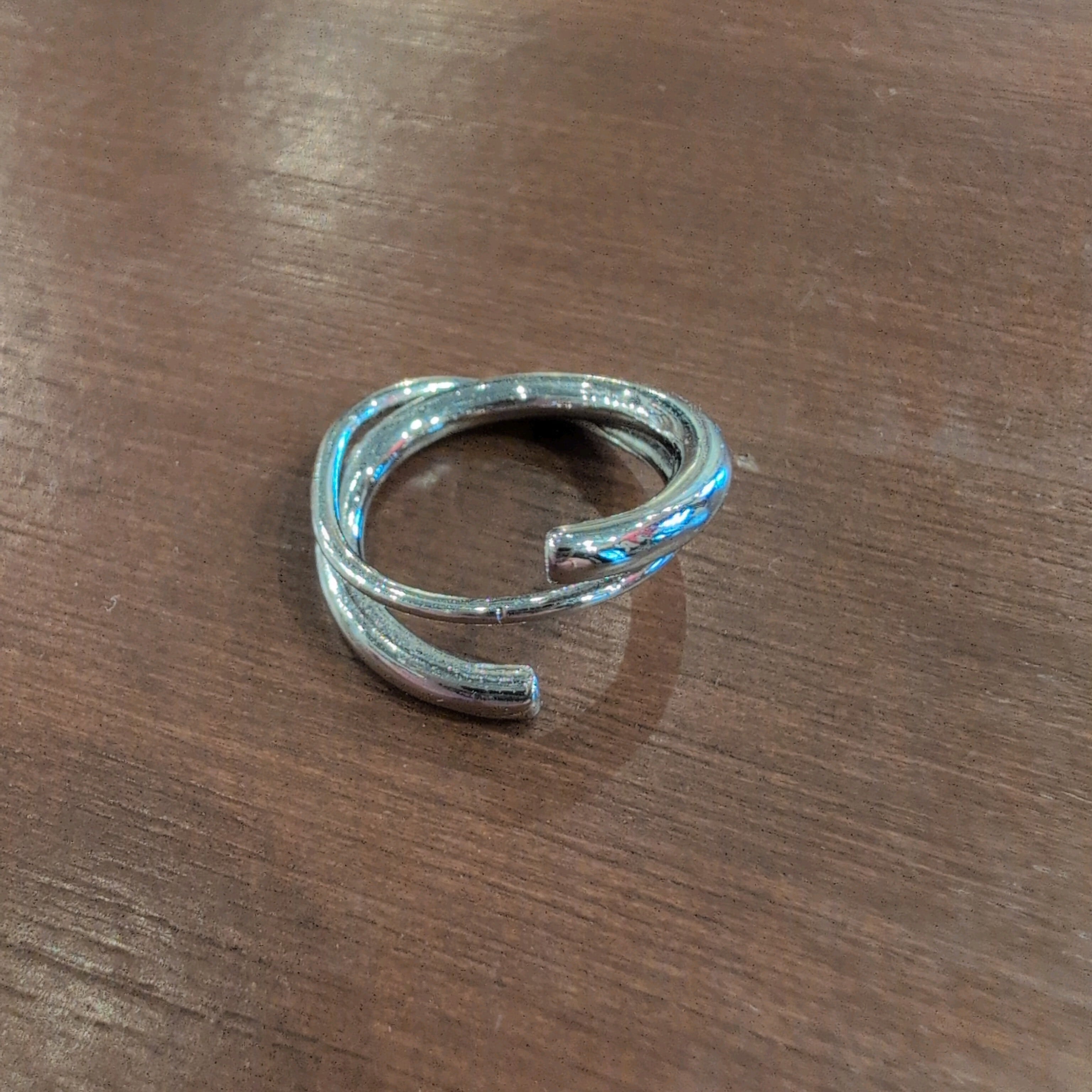 立体的なデザインのシルバーカラーのリングです