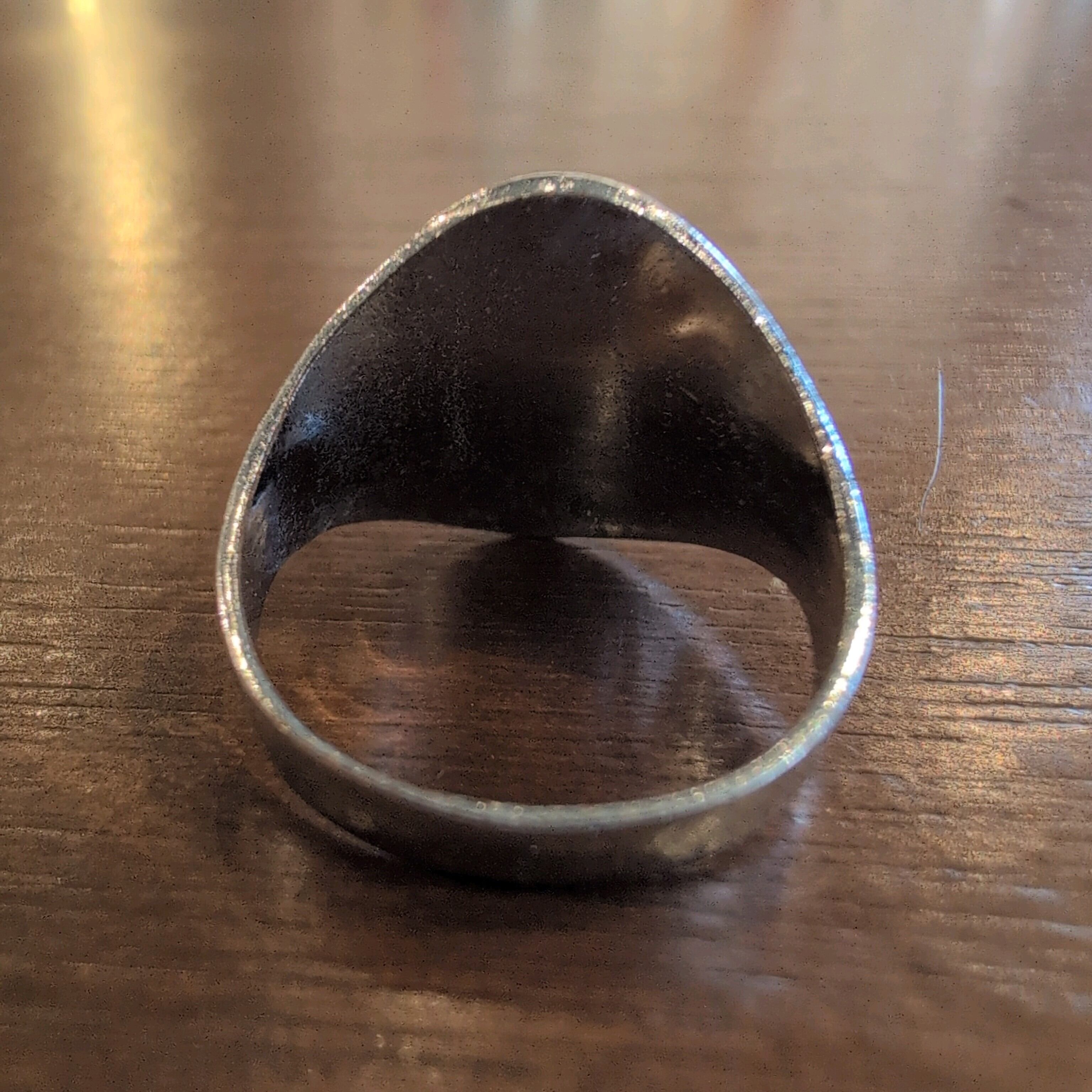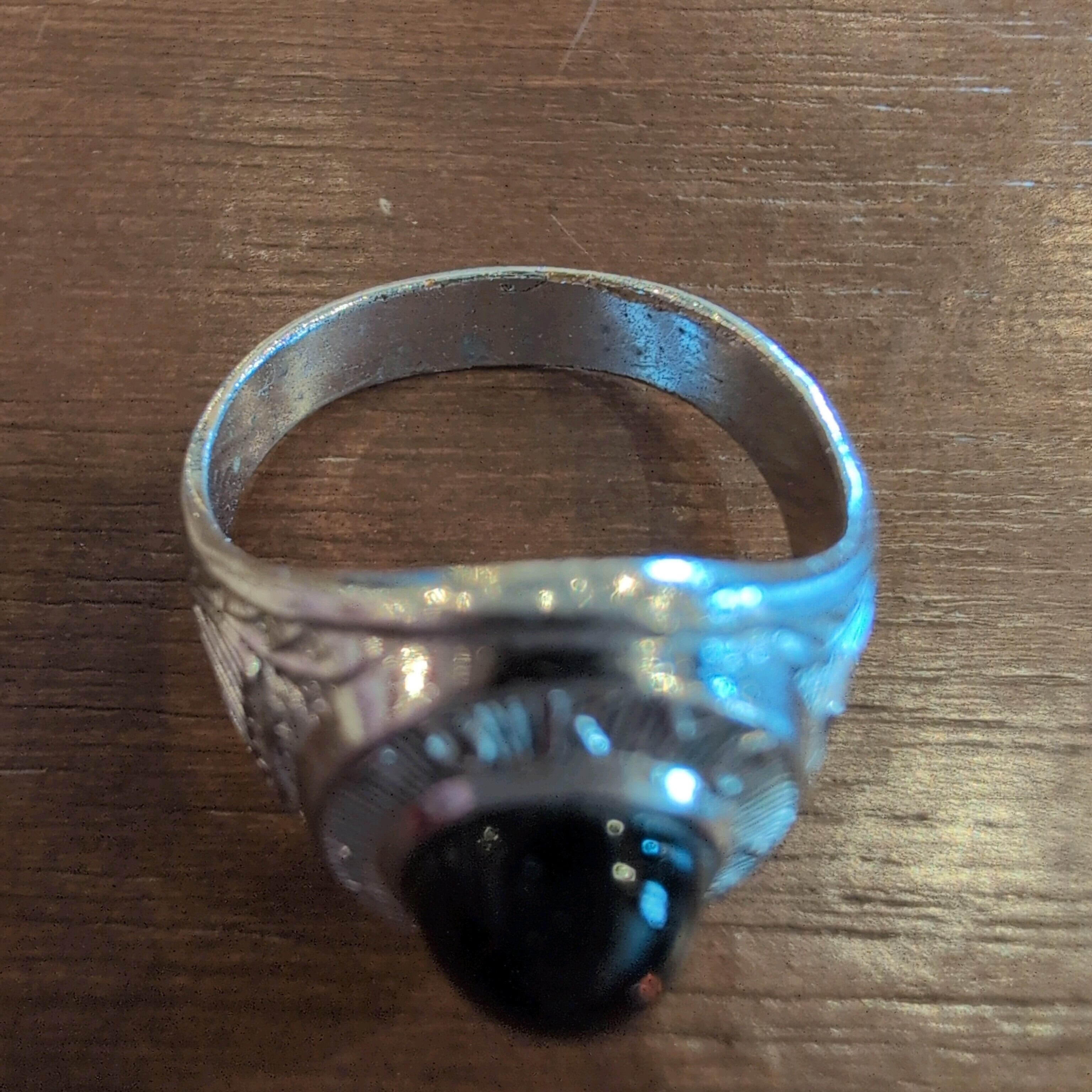 中央に大きなブラックストーンが装飾されたリングです