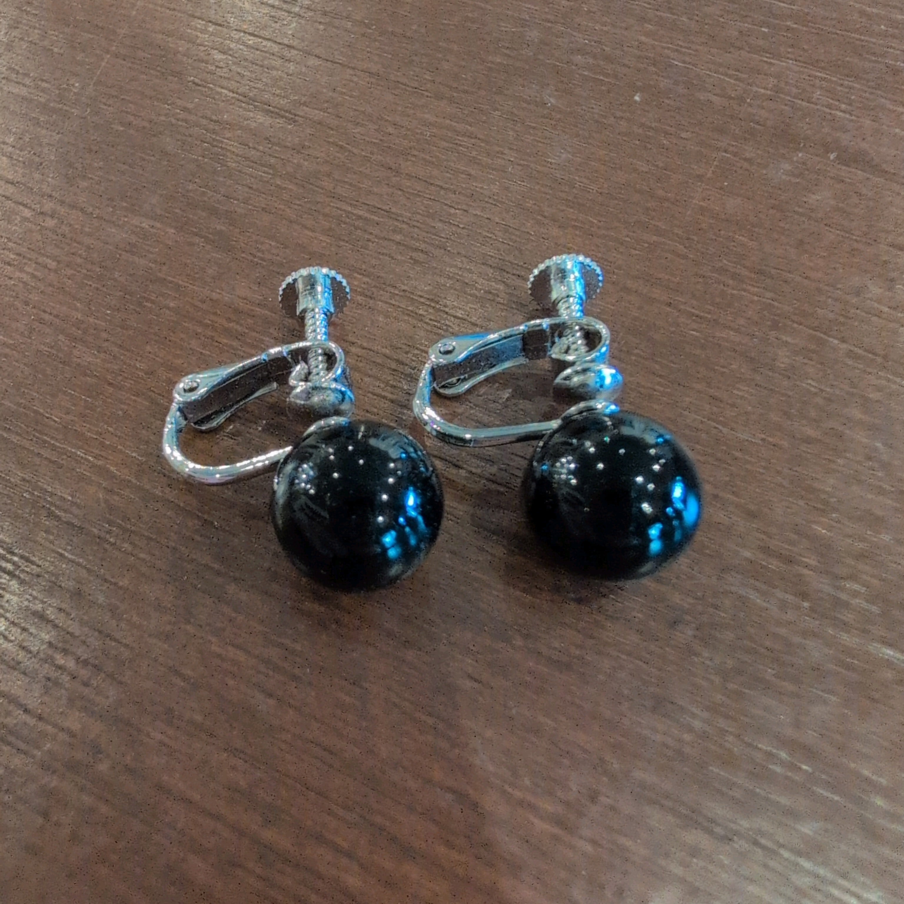 黒のストーンが装飾されたシンプルなデザインのイヤリングです