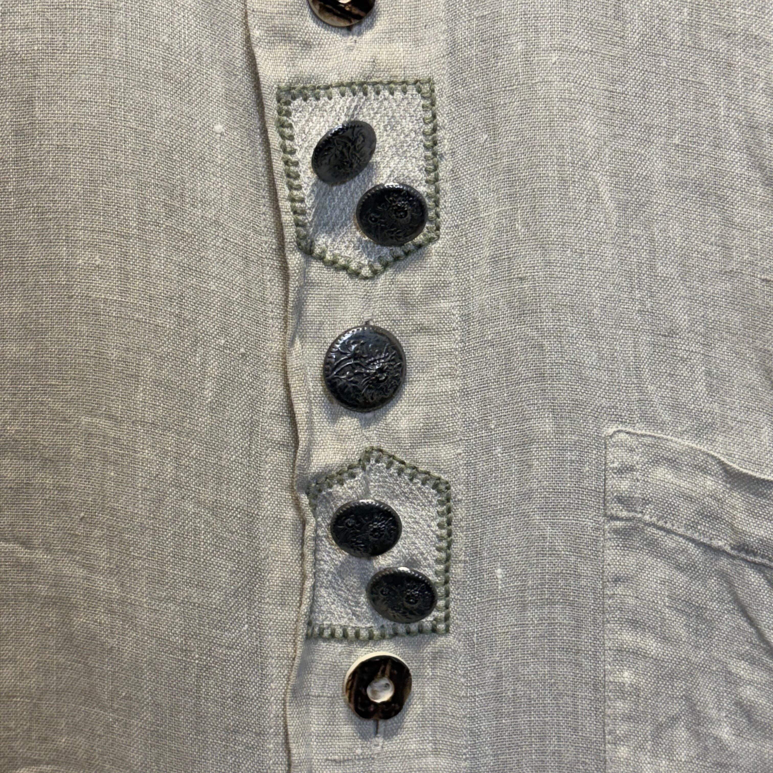 リネン100%の素材で、肌触りや通気性がよく、これからの時期にもってこいのシャツだと思います。