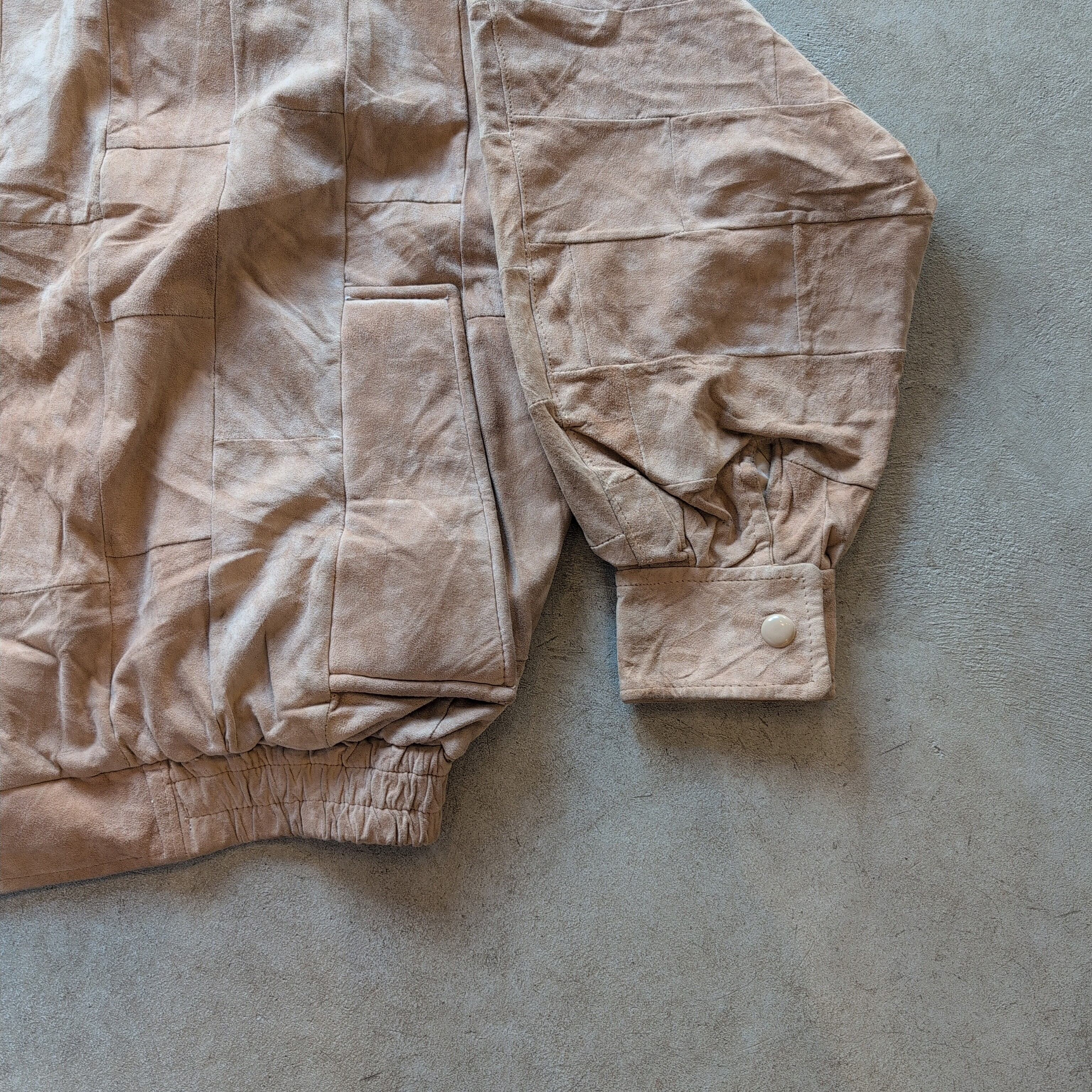 柔らかなフェイクスエードの質感に、ほんのり光沢のあるベージュカラーで落ち着いた雰囲気の1枚だと思います
