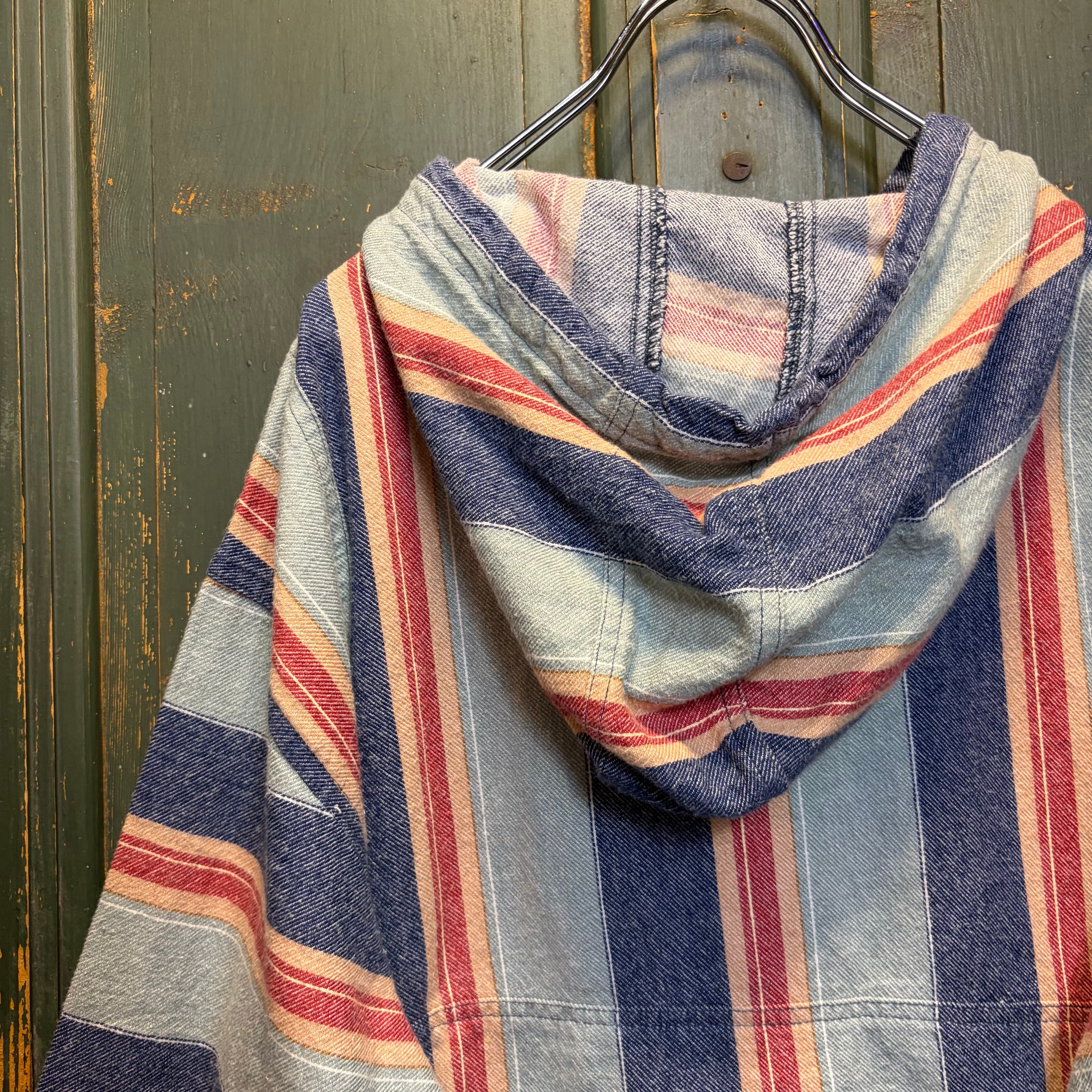 マルチカラーのストライプ柄が特徴的で、春先のコーディネートの主役になってくれる一着です。