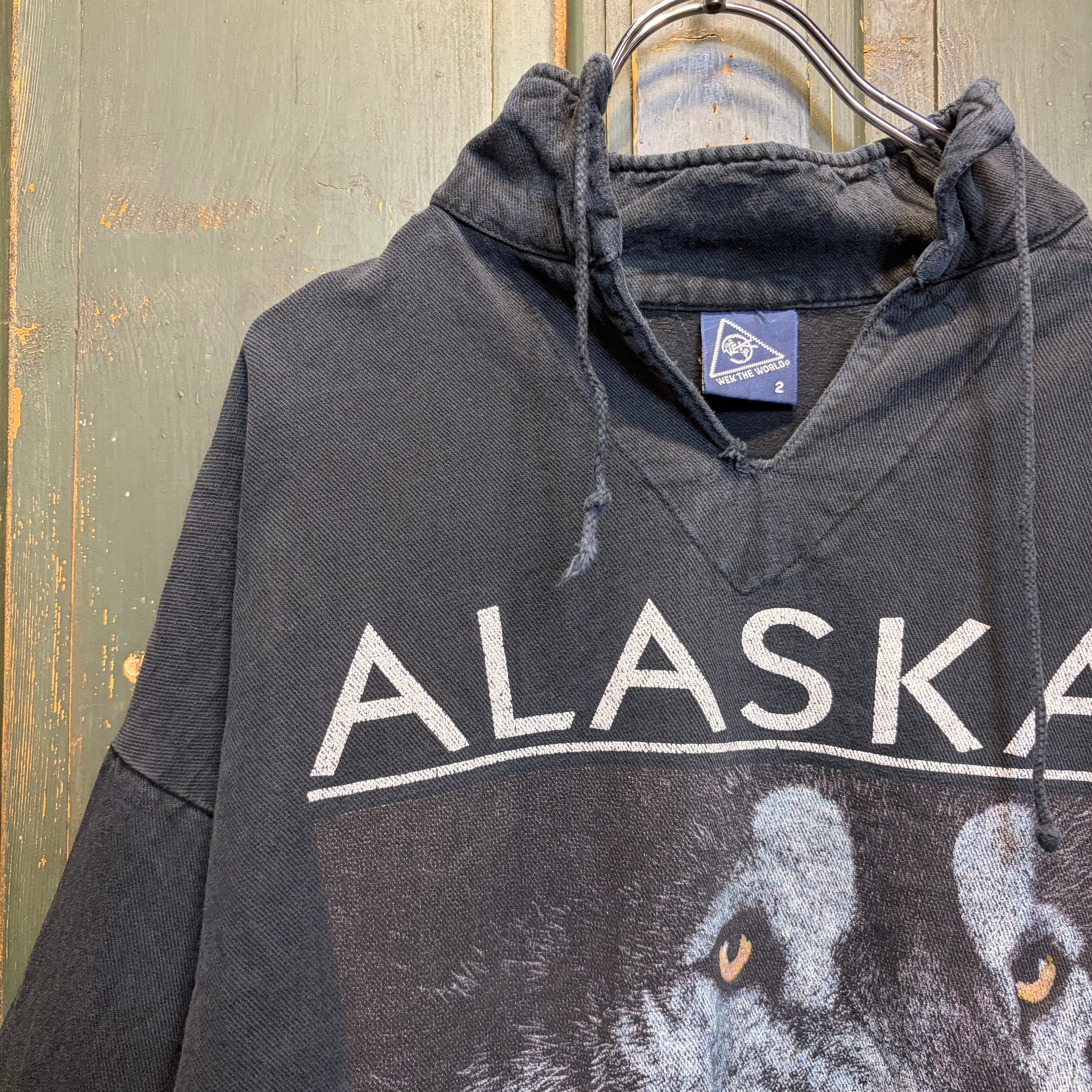 "1990s Alaska wolf print cotton pullover"