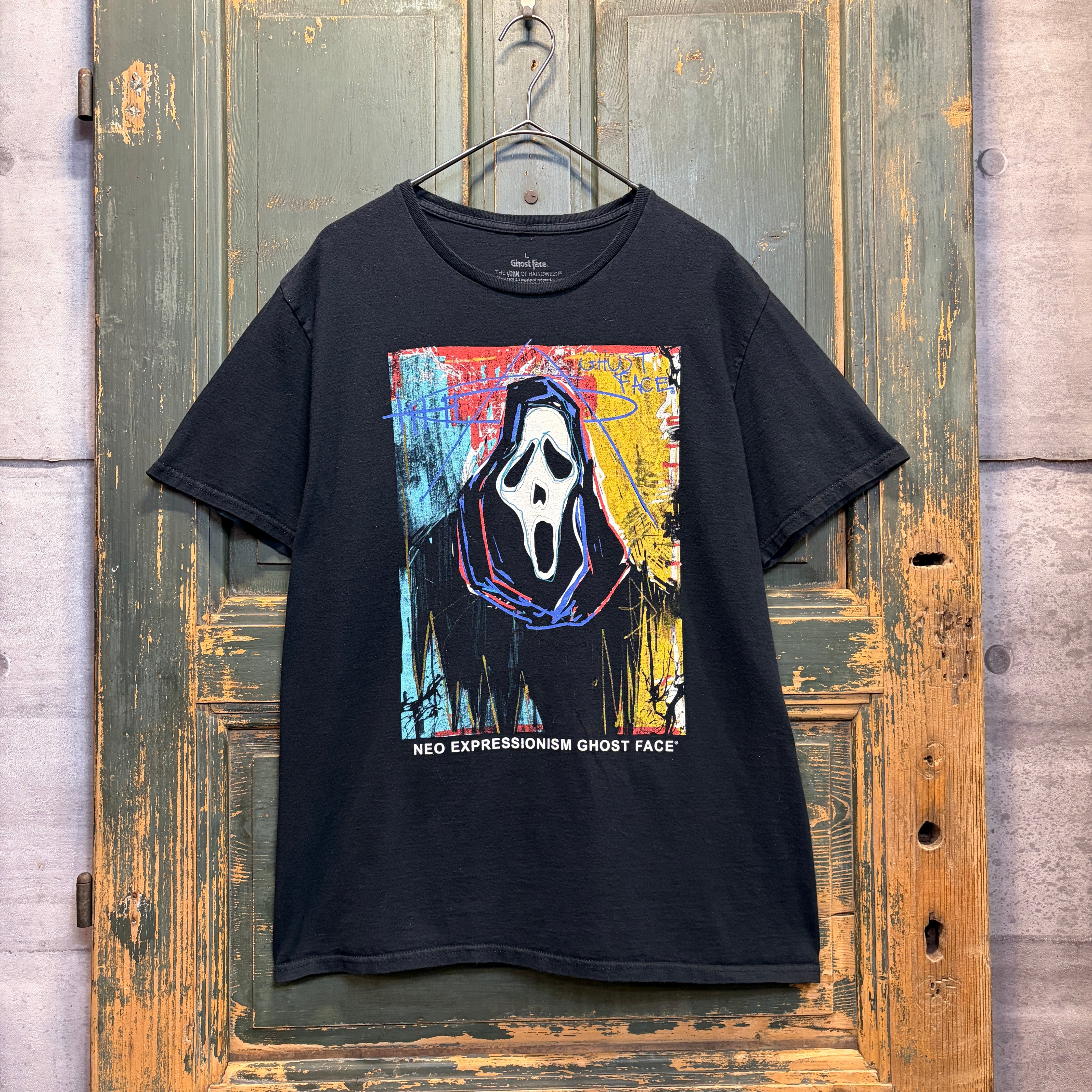 映画スクリームの登場人物であるゴーストフェイスのプリントTシャツです