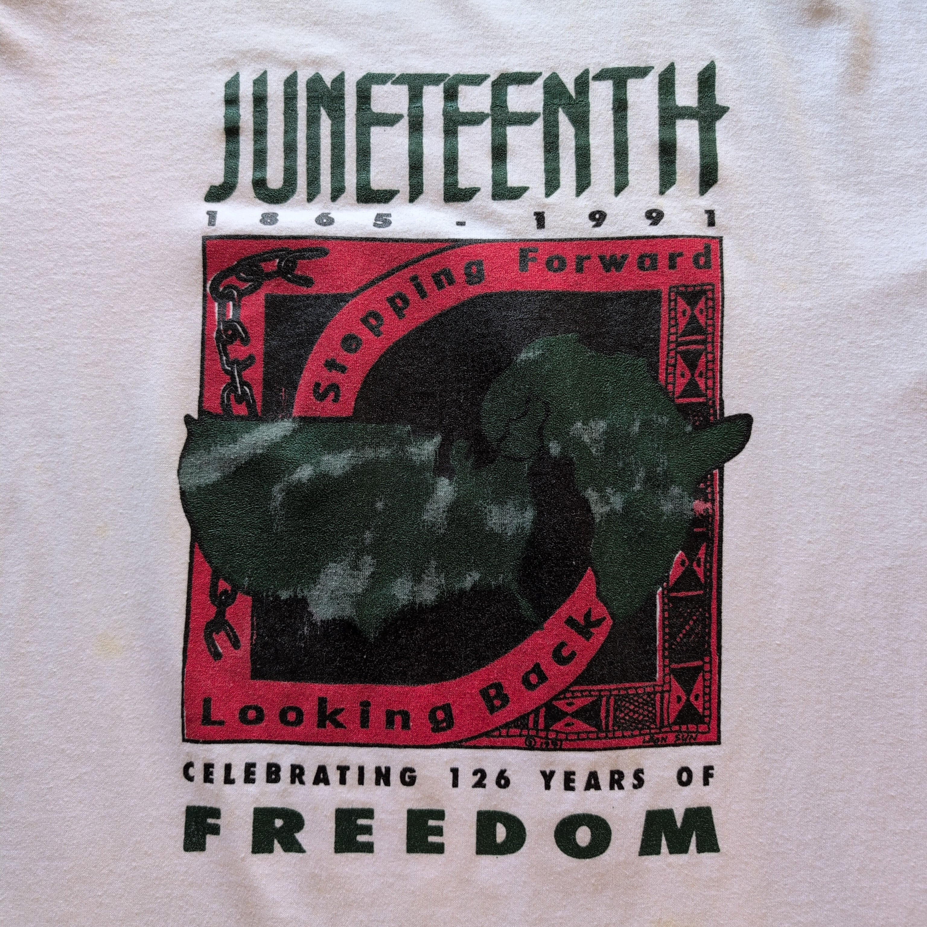 1990年代のヘインズのアメリカの祝日Juneteenth(奴隷解放記念日)がデザインされたTシャツです