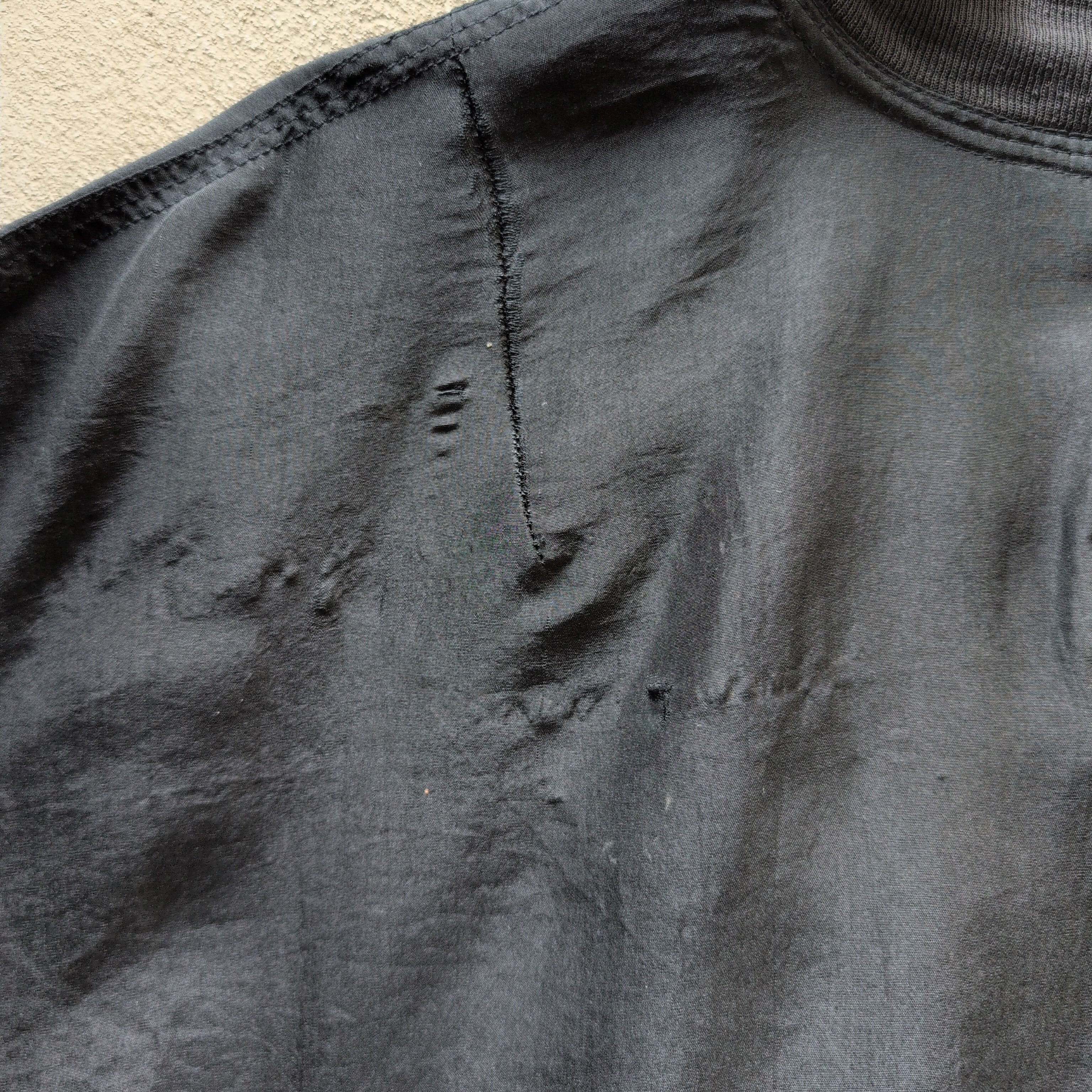 MA-1のシルエットにシルクの上品な光沢を掛け合わせた1枚だと思います