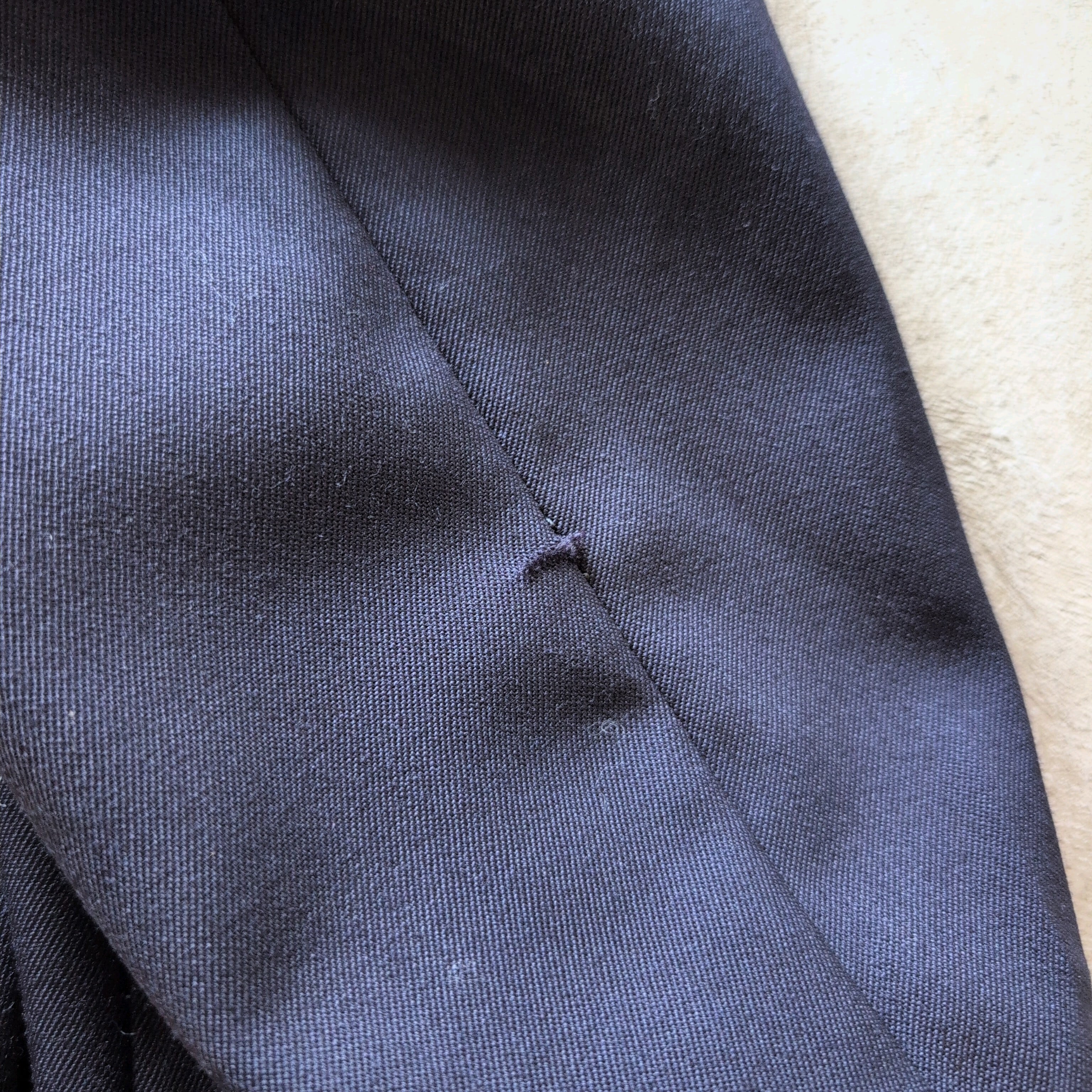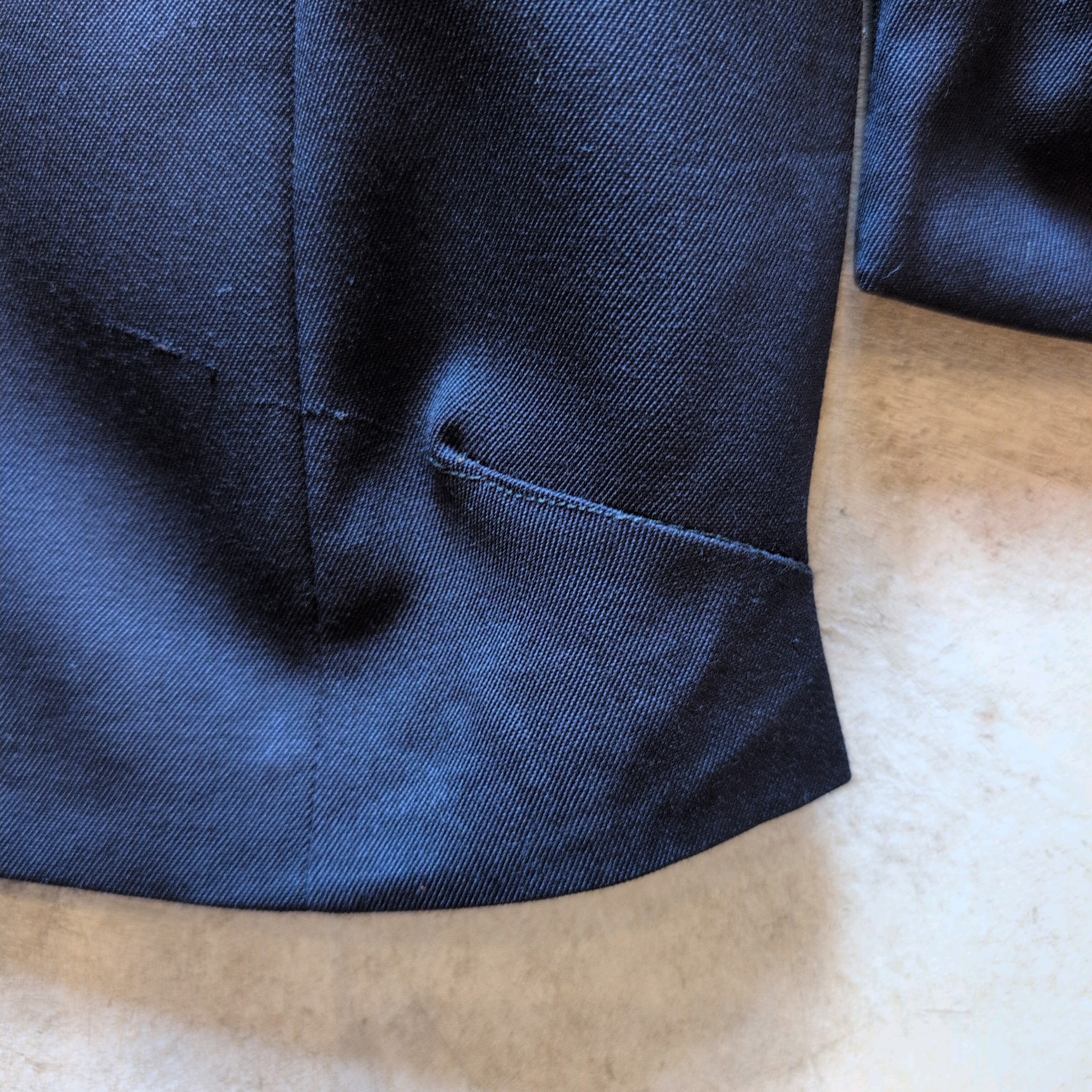 紺色ぽい生地に、ゴールドのボタンがさり気ない存在感を放ち、クラシックで時代を感じられそうな1枚です