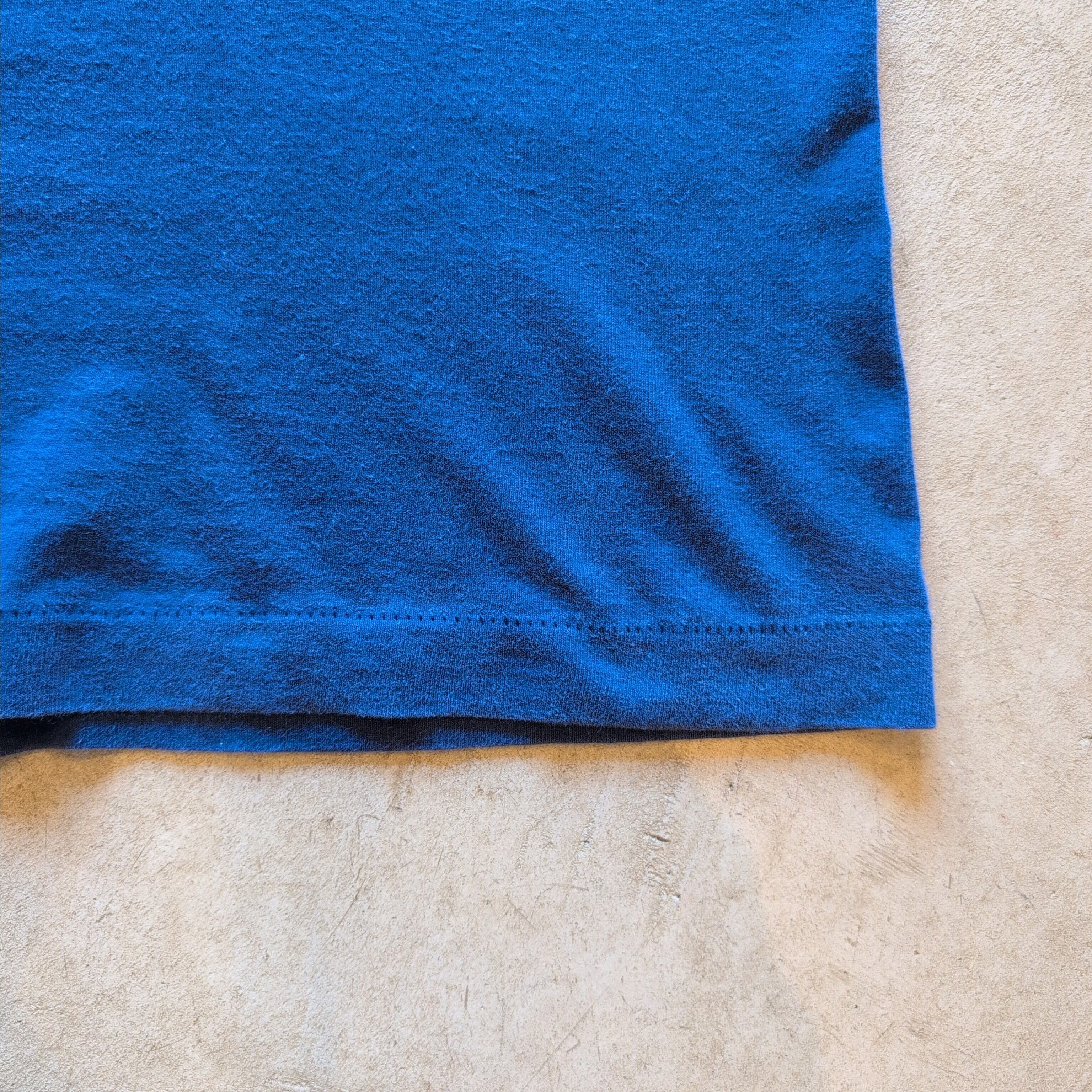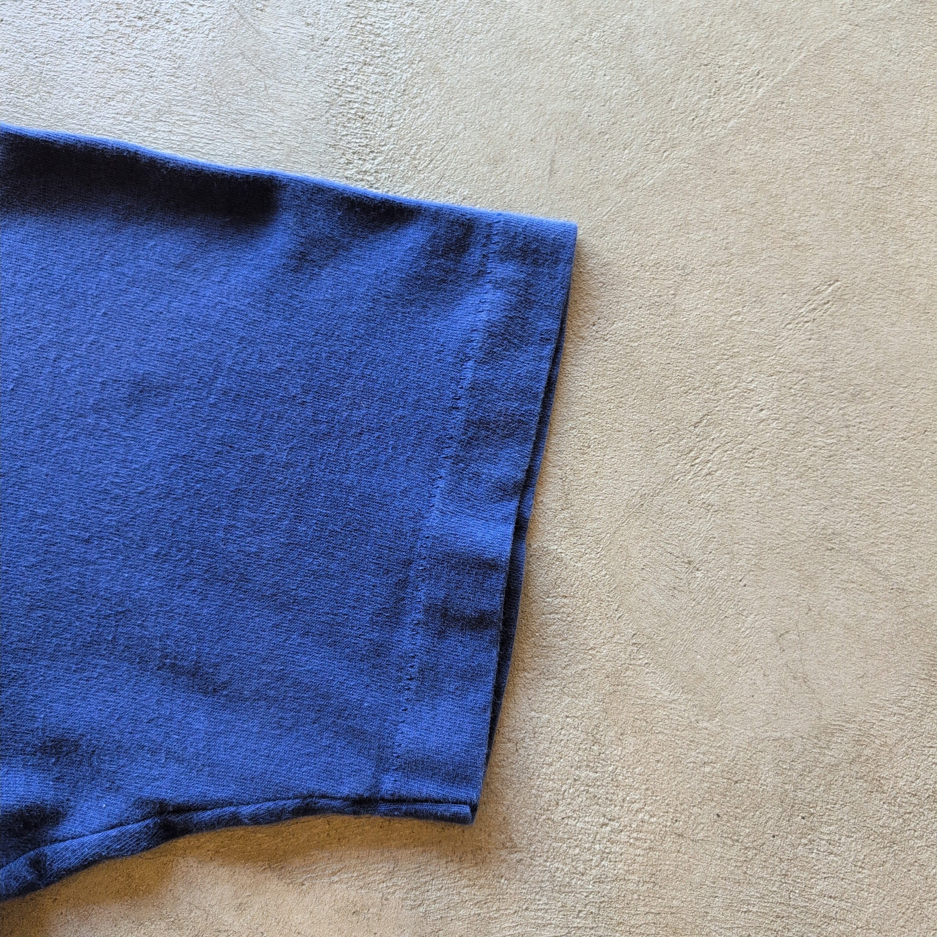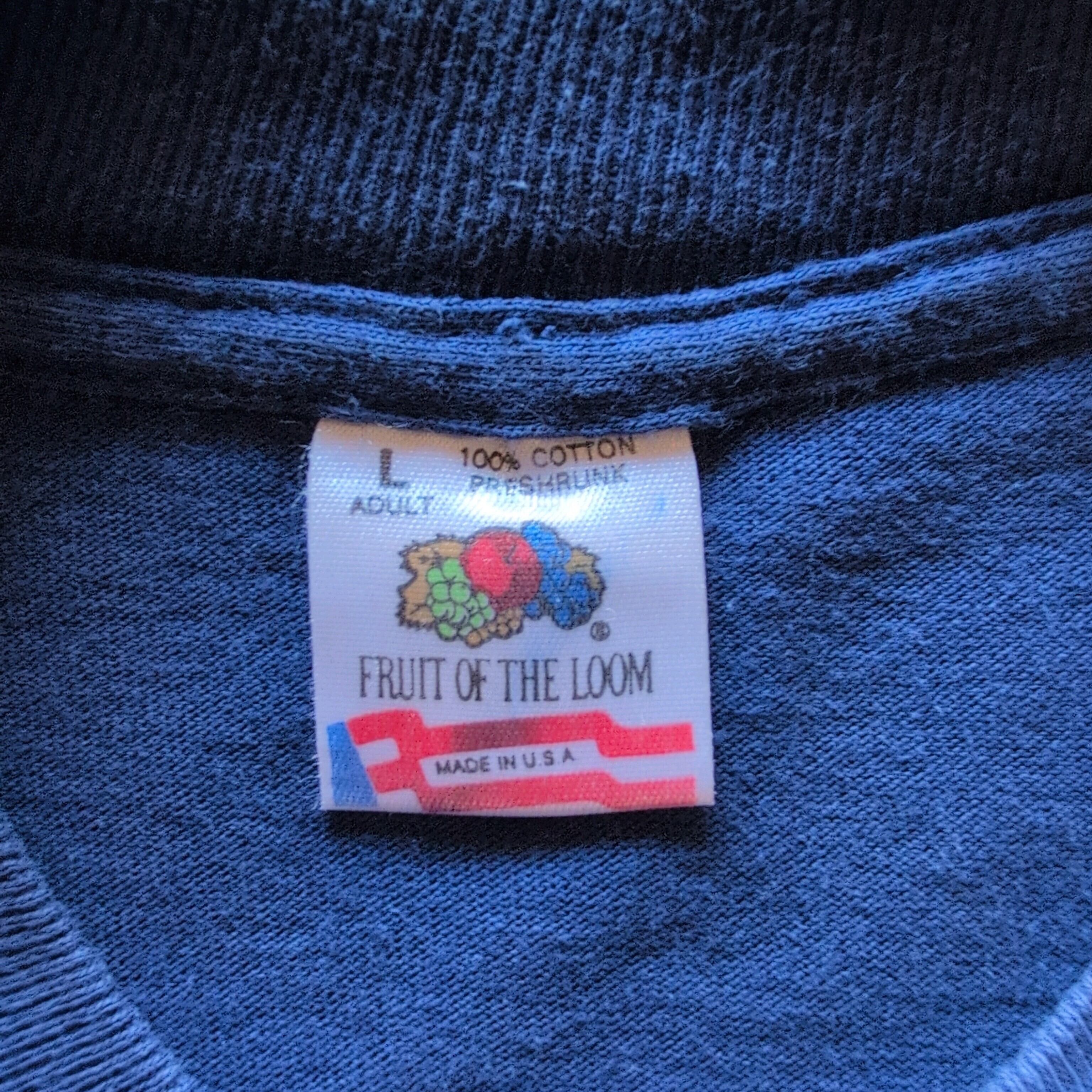 バックプリントの存在感はもちろん、フロントのメッセージも遊び心があって、古着好きの心をくすぐるデザインだと思います