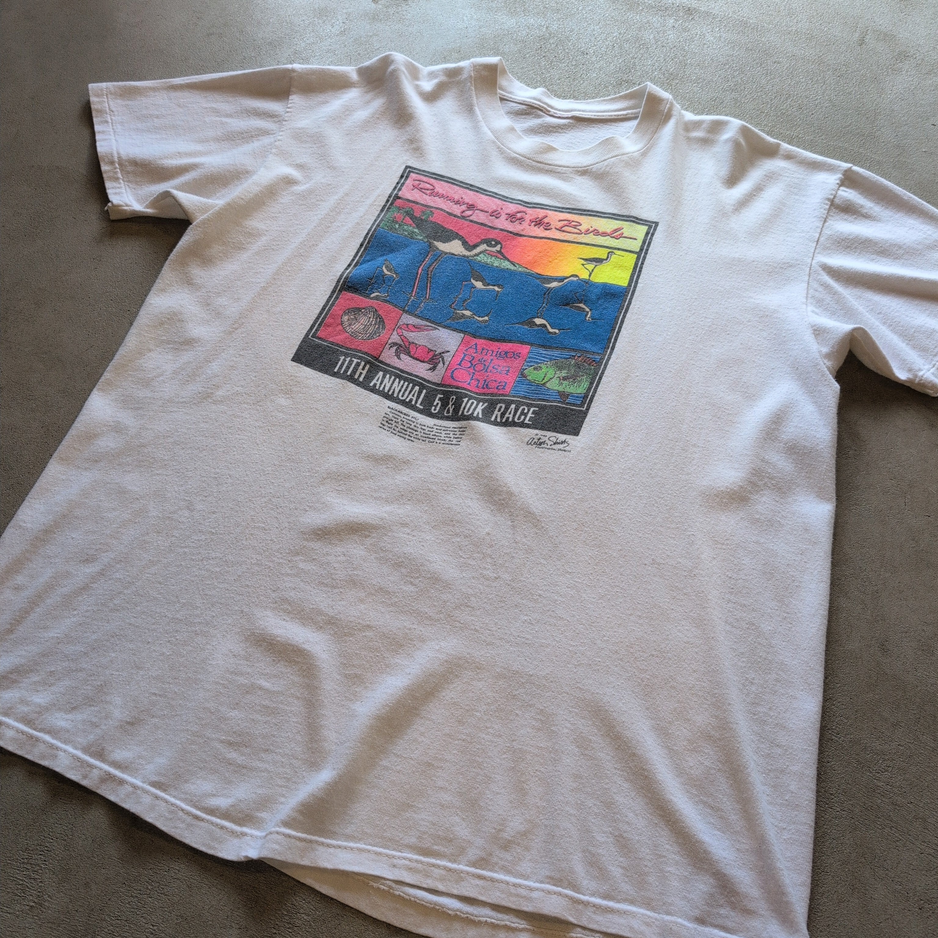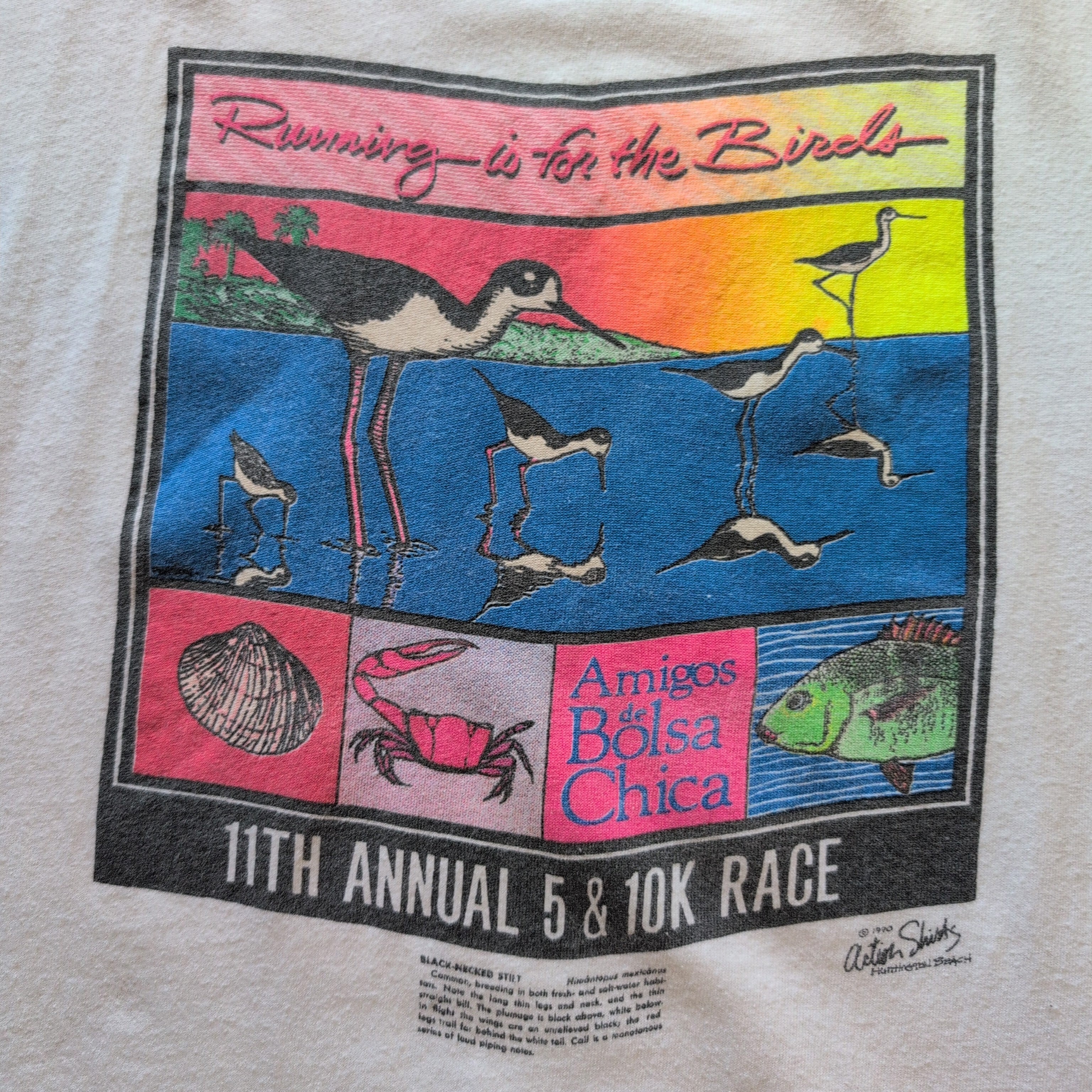 "1990s Vintage Running Is For The Birds Design S/S T-Shirt"