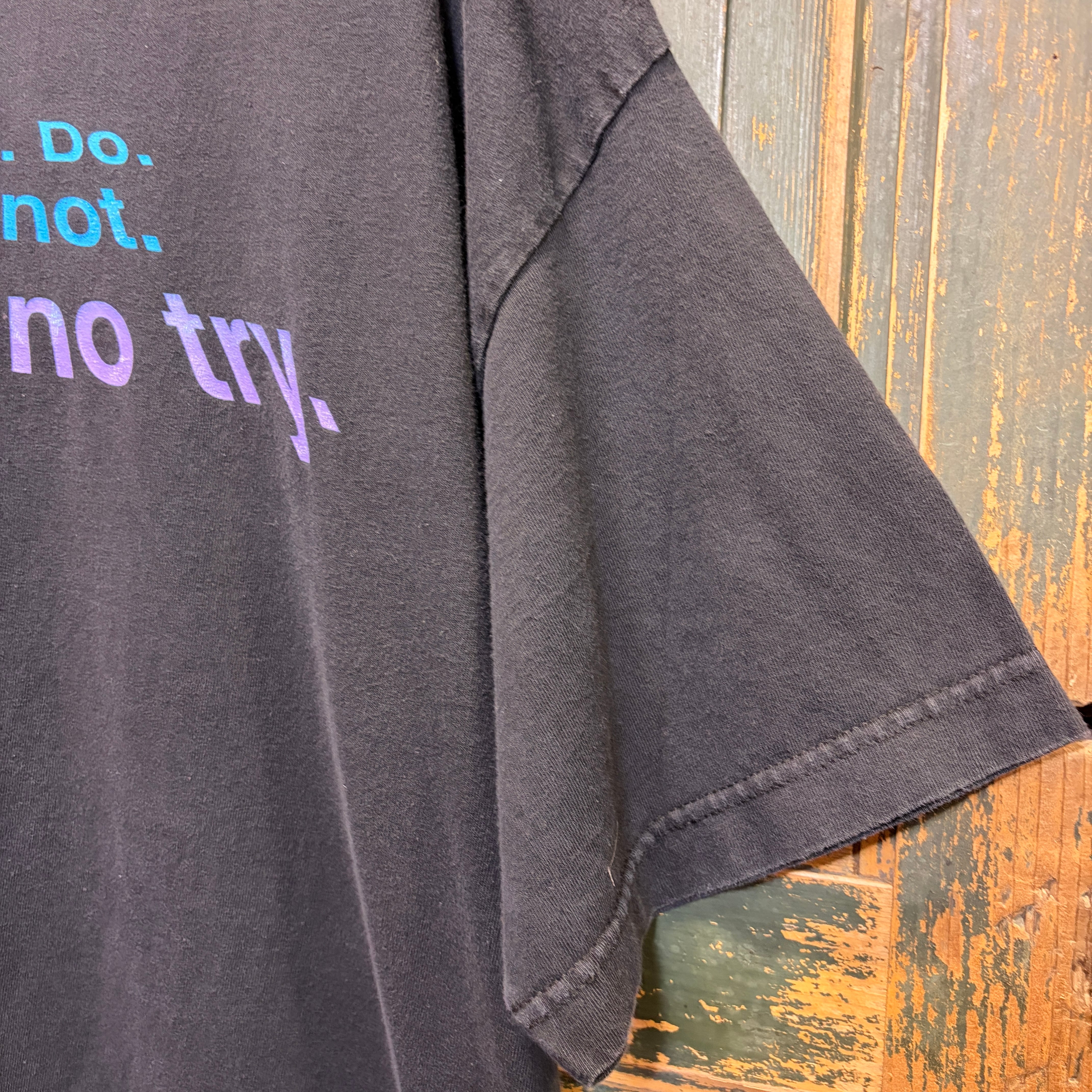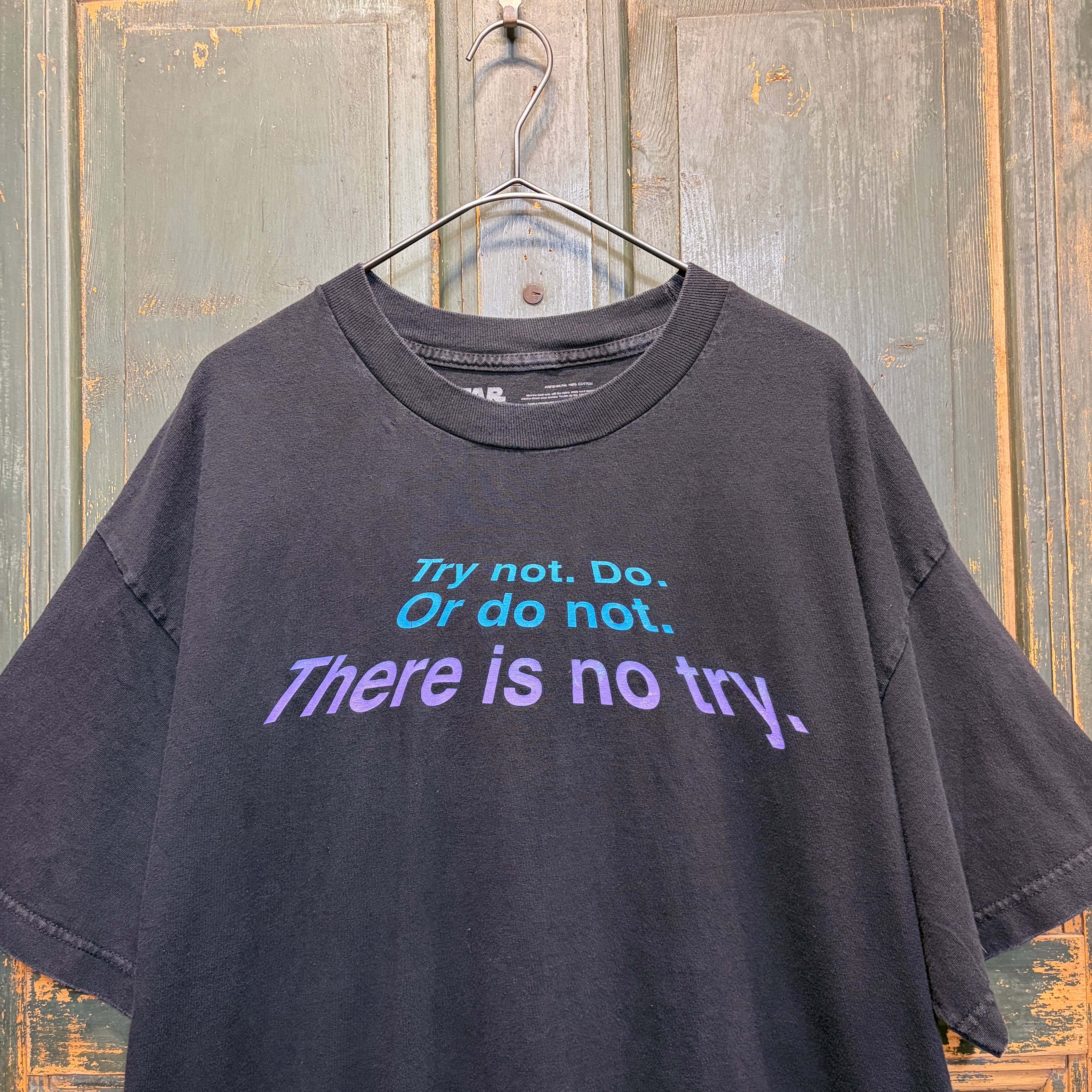 名言とともにSTARWARSのヨーダがプリントされたTシャツです