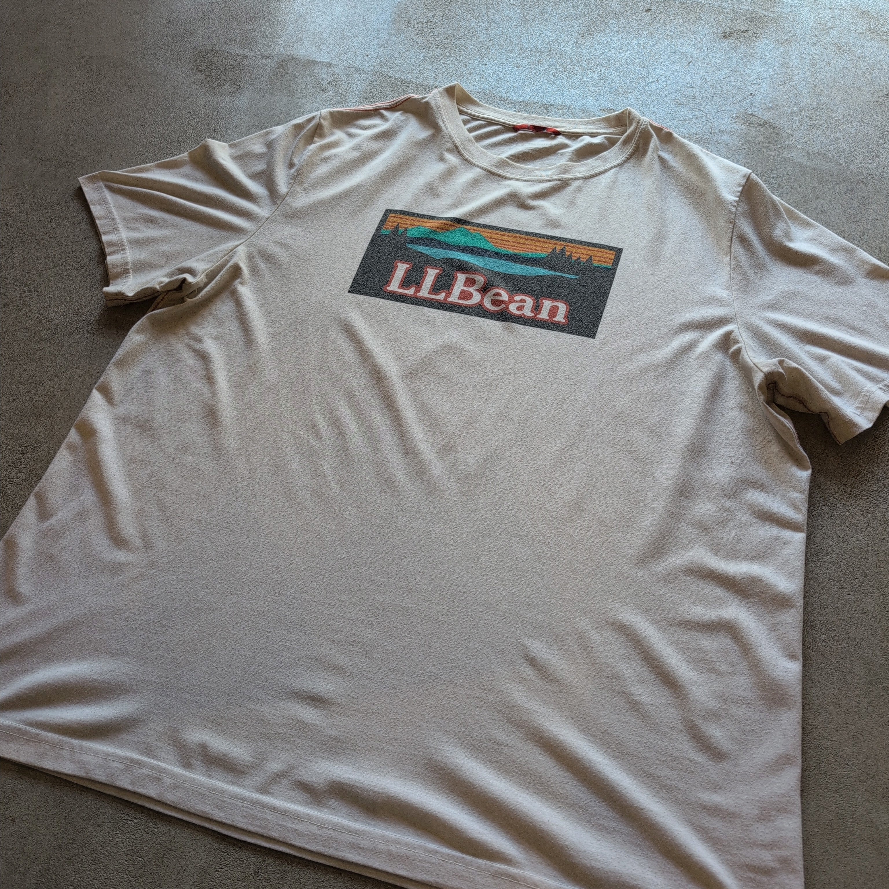 "L.L.Bean Beige Color Logo Design S/S T-Shirt"